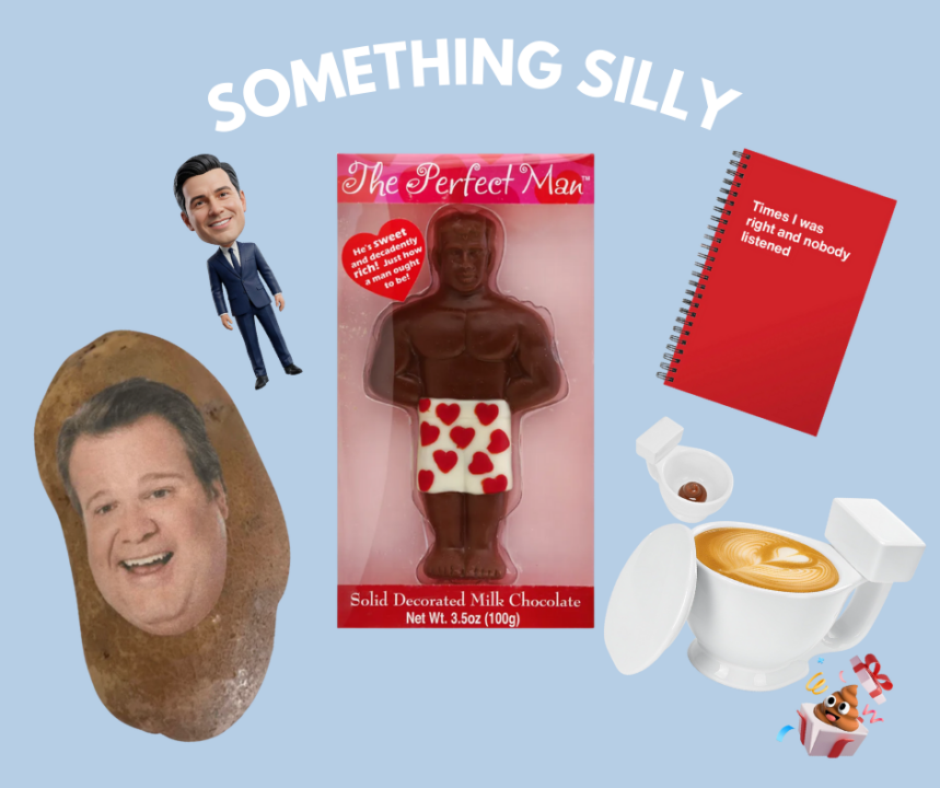 Now, I’m not talking about the “here’s a new charging cord” kind of silly. (That might just get you in trouble!) I’m talking about something like The Perfect Man chocolate, a custom bobblehead, their face on a potato, a toilet mug, or a “Times I was right and nobody listened” notebook. Again, it’s important to know your person: If they’ll just see it as a waste of money and dumb, that might be your cue not to buy it. But if they appreciate goofy gestures, making them laugh might be the best gift of all.