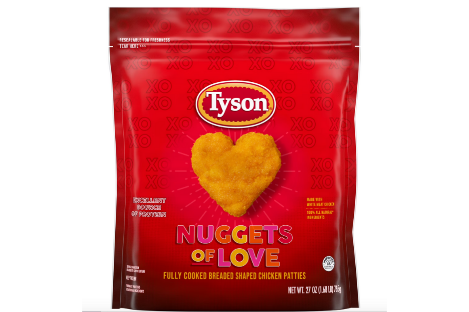 - Walmart sells Tyson’s heart-shaped frozen chicken nuggets.